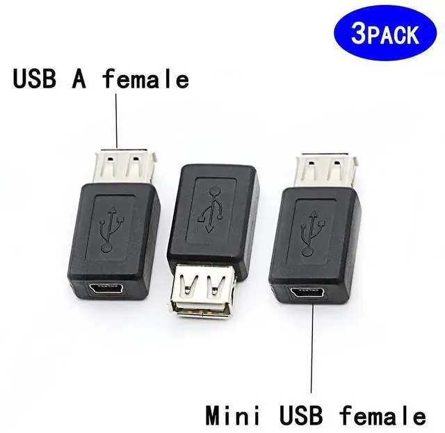 USB Type A female to USB Mini B 5 pin female. Supports data transfer speeds up to 480 Mbps. Fully shielded to help reduce EMI and other interference sources. Plug and play, No need to install drivers, portable and flexible.