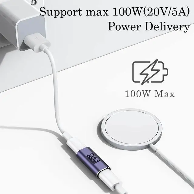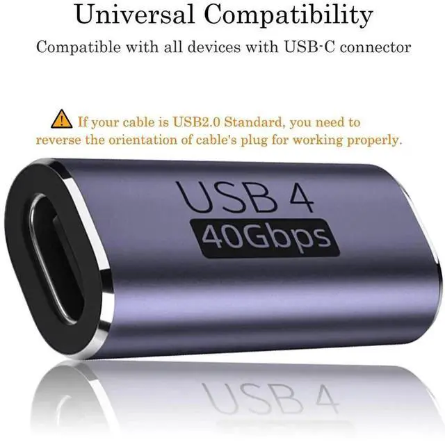 USB C Coupler (2 Pack), USB Type C Female to Female Adapter Extender Compatible with Thunderbolt 4/3 Support up to 40Gbps Data Transfer, 100W Power Delivery and 8K@60Hz Video Pass Through