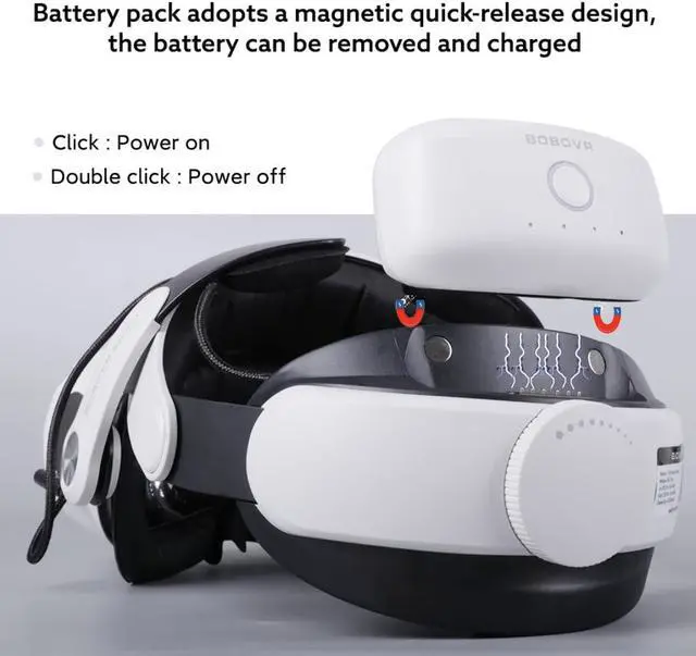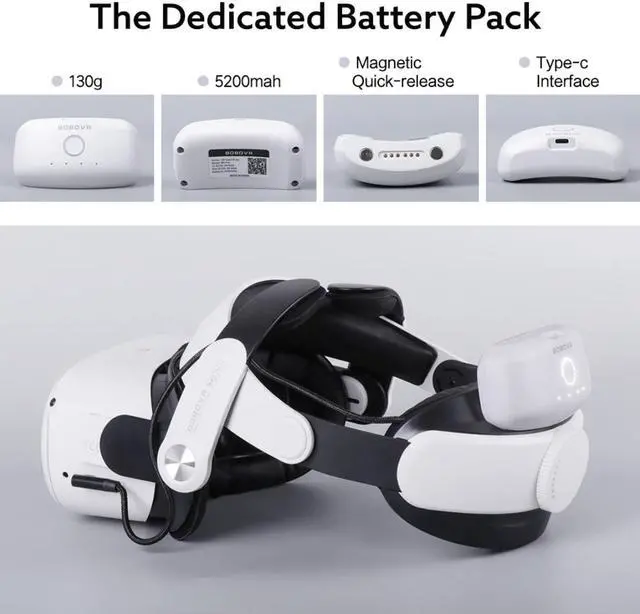 Is there a possibility? Not bound by the charging cable BOBOVR M2 Pro brings a new solution In May 2021, the M2 Strap we launched has won everyone’s appreciation, We are very encouraged. This time we launched the Pro version based on your feedback. Our design concept is to get rid of the shackles of the charging cable. M2 Pro innovatively uses a replaceable modular battery, which can be removed and charged at any time without disturbing normal use, and even multiple battery packs can be replaced without interruption, realizing the unlimited battery life of Quest2.