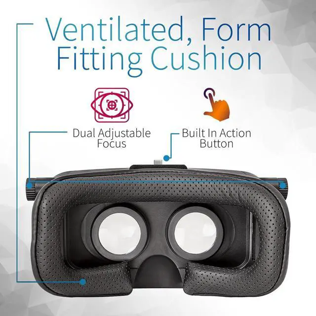 COMFORTABLE AND ADAPTABLE DESIGN: Other VR headsets are stiff and uncompromising, Utopia 360 has 3 straps and a ventilated cushion to keep you cool. Dual adjustable focus allows you to modify the focal length and interpupillary distance (PD) to suit your needs. The built-in action button provides maximum app compatibility with touch technology.