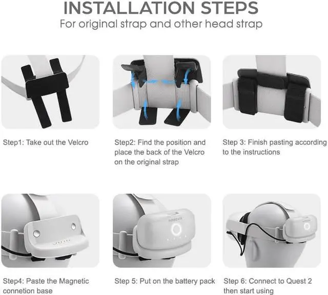 Compatible with Quest2 default headband, For Quest Pro,For Pico 4 VR Headset,as well as other styles of Head Strap, it can be fixed in the form of Velcro.