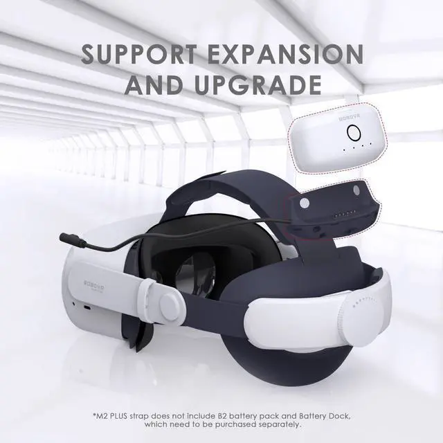 Support expansion and Upgrade, M1 PLUS strap with battery expansion port, it is convenient for users to use BOBOVR's new Battery Dock accessory to upgrade to a battery strap version, and realize unlimited power through the alternate use of 2 B2 battery packs, so as to avoid unnecessary Necessary waste. (M1 PLUS strap does not include B2 battery pack and Battery Dock, which need to be purchased separately. )