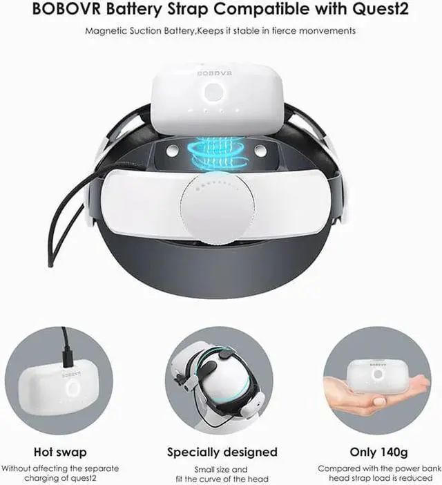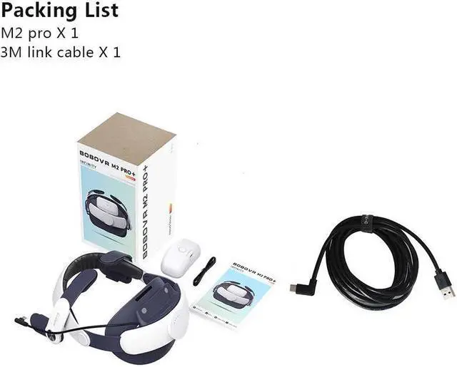 BOBOVR M2 Pro + Comfort Battery Head Strap With Link Cable 3M Compatible With Meta/Oculus Quest 2 VR Headsets Replaceable Worry-free Powered Strap for VR Accessories