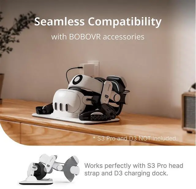 - Perfect Integration with BOBOVR Ecosystem: Seamlessly compatible with the S3 Pro head strap, providing both comfort and enhanced ventilation. Can be used with the D3 charging dock for convenient charging and storage. This integration allows users to fully experience the convenience of the BOBOVR accessory ecosystem.Works with all Quest 3 head straps.