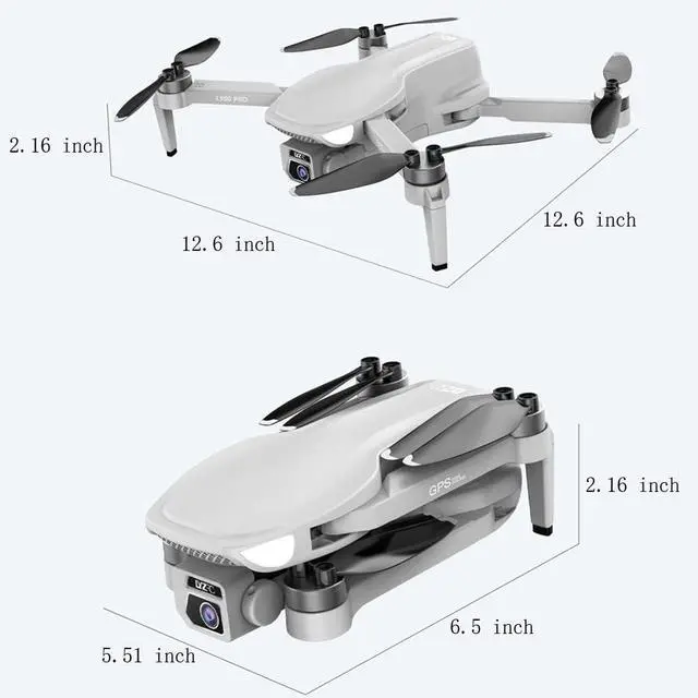 Quadcopter Size: 12.6*12.6*2.16inch (Unfoldable), 6.5*5.51*2.16inch (Foldable)