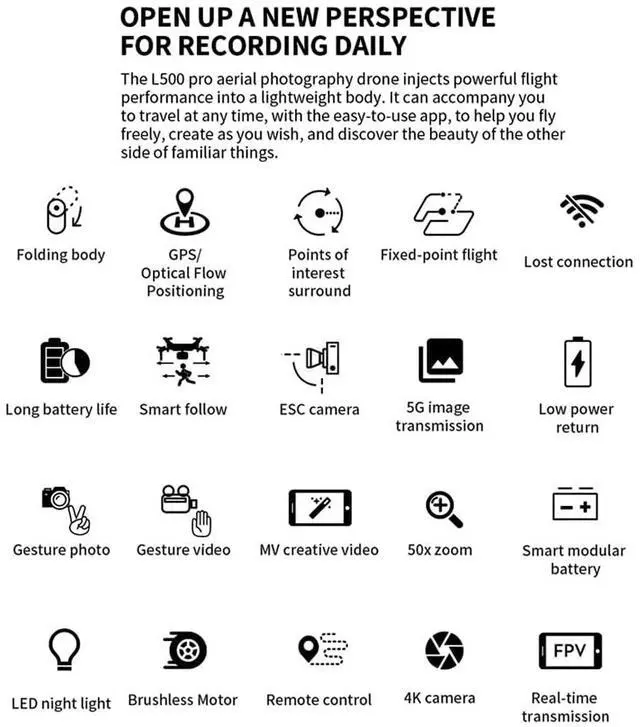 4. GPS Assisted Flight. Provides you with accurate positioning details. The drone will automatically return to home when its battery is low or the signal is weak or when flying out of range. Never worrying about losing the drone.