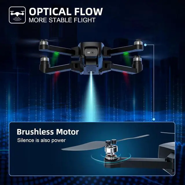 • Special feature 2K HD Dual Camera, 5G WIFI Transmission, Brushless motor, Foldable, Optical Flow