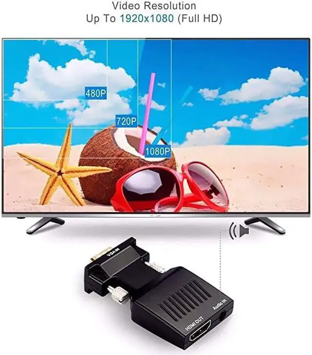 What is included: 1 x VGA to HDMI adapter + 1 x USB cable + 1 x Audio cable