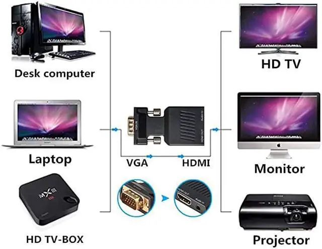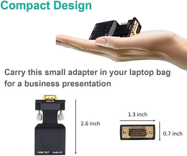NOTE: This converter is NOT bi-directional, only support from VGA to HDMI Displays. Can NOT be used as a HDMI-to-VGA converter cable. The product need an external power supply, a USB cable is needed to supply power to make sure it can work perfectly (USB cable is included). An HDMI cable is also needed (HDMI cable not include).