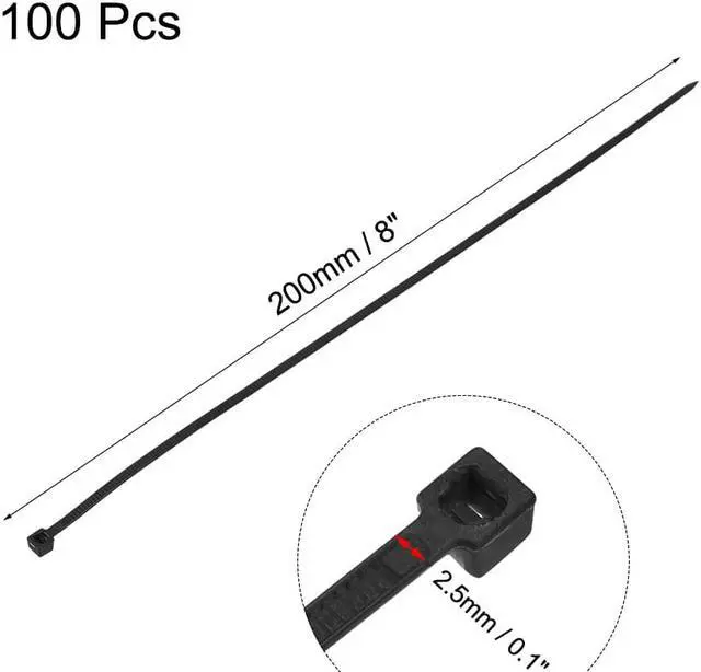 Cable Zip Ties 200mmx2.5mm Multi-Purpose Nylon Tie Wraps Black 100pcs