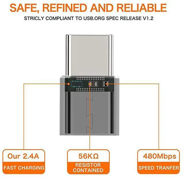 *****[Fast Charger & Sync]: By USB 2.0 protocol, charges your USB-C devices and enjoys fast data transfer at a rate of up to 480 Mbps. Built with 56K pull-up resistor for safer and more reliable quality*****[Quick and