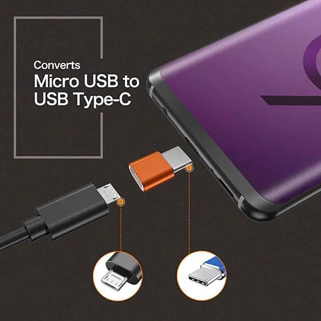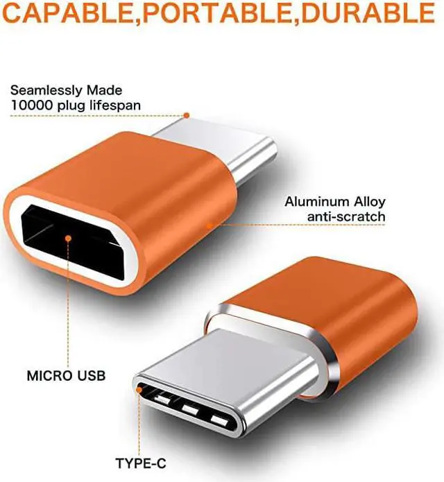 • **********[Mini Version Design] : Micro USBFemaleto USB CMaleadapter, High quality Aluminum Body, A minimalist solution for using Micro USB cables with USB-C phones, tablets and laptops. Super quality Cable adapter for USB C Device.*****[Fast Charger & Sync] :By USB 2.0 protocol, charges your USB-C devices and enjoys fast data transfer at a rate of up to 480 Mbps. Built with 56K pull-up resistor for safer and more reliable quality*****[Quick and Simple]: Hi-speed quick charge and sync for Type-C device by connecting with the Standard Micro USB Cable.*****[Increase Compatibility ] : Compatible with all usb c devices such as Samsung Galaxy S10 S9 S8 Plus,Galaxy Note 9 8,Google Pixel 3 2 XL,LG V40 V35 V30 V20 G7 G6 G5,Nexus 6P 5X,Moto Z2 Z3,OnePlus 6 5 3T 2,HTC U12 U11,New Macbook and more.*****[18-Month Warranty] : Any question, do contact our customer support team, we will response within 24 hours by email