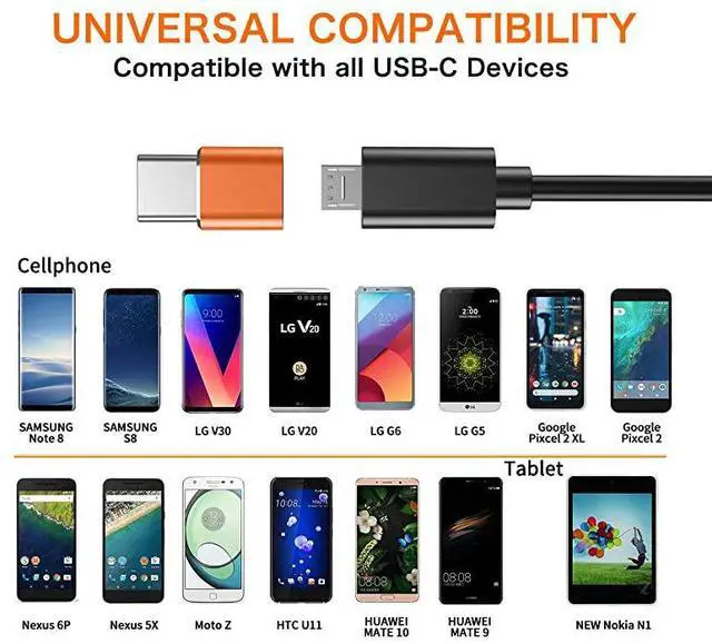 *****[Increase Compatibility ]: Compatible with all usb c devices such as Samsung Galaxy S10 S9 S8 Plus, Galaxy Note 9 8, Google Pixel 3 2 XL, LG V40 V35 V30 V20 G7 G6 G5, Nexus 6P 5X, Moto Z2 Z3, OnePlus 6 5 3T 2, HTC U12 U11, New Macbook and more.