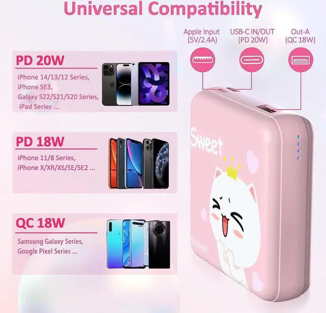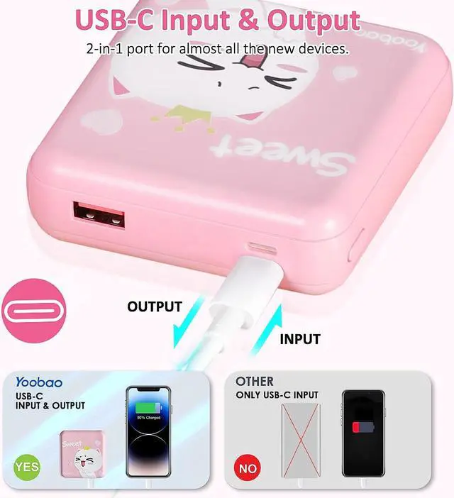 What's in the box: Cute Portable Charger*1, USB-C Cable (for the battery)*1, User Manual*1