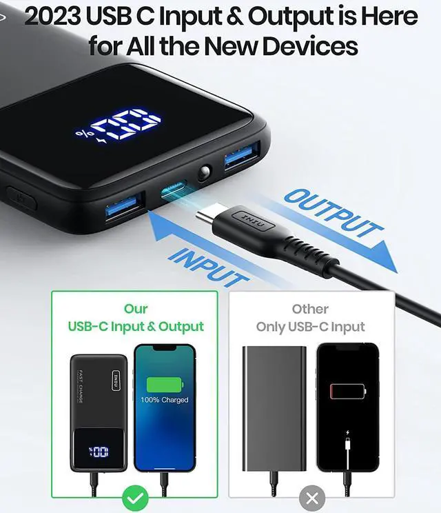 & Unlike most chargers featuring a USB C input only, INIU PD 10500mAh has a USB C In & Out port to perfectly fit your new iPhones, iPad and all upcoming USB C devices.
