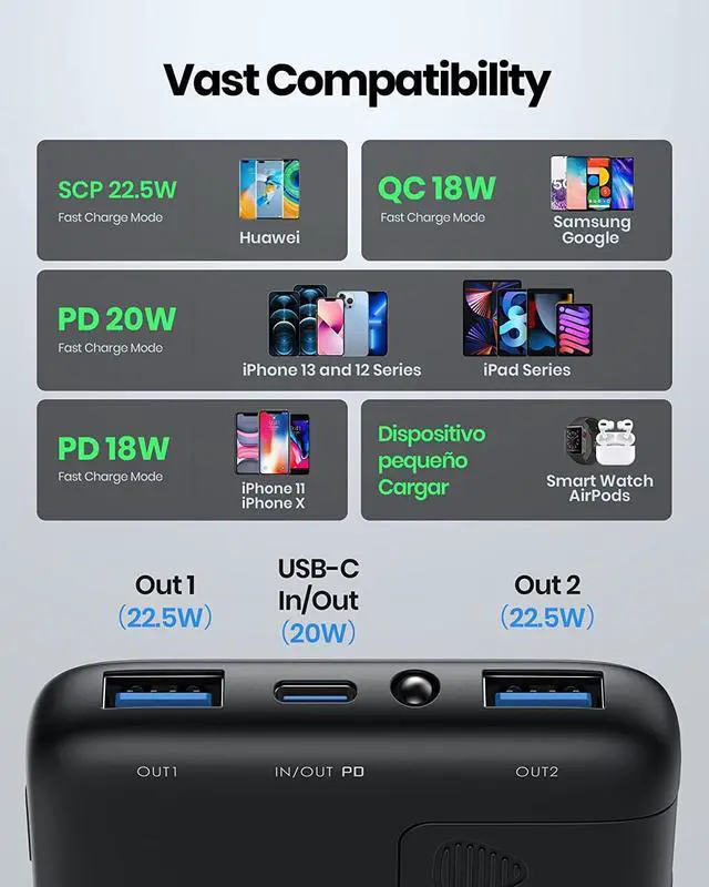. Combined with the most advanced PD 3.0 & QC 4+ fast charging technologies, INIU 22.5W power bank can incredibly fast fuel your new iPhone from 0 to 54% in 25mins, 2X faster than traditional 2.4A chargers.