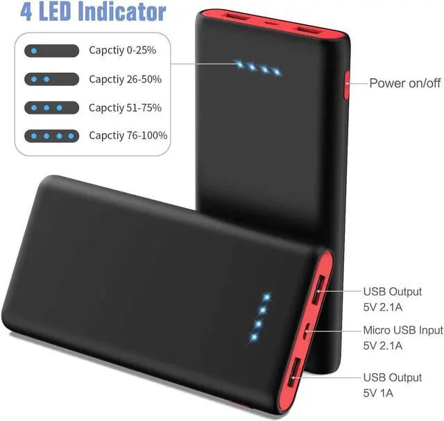 Dual USB Charging & Fast Recharge -- The Dual USB ports ( 2.1A +1A) to charge your two devices simultaneously, Fully recharges itself in 8~12 hours with 2.1A input charger, or 12-24 hours with 1A charger;