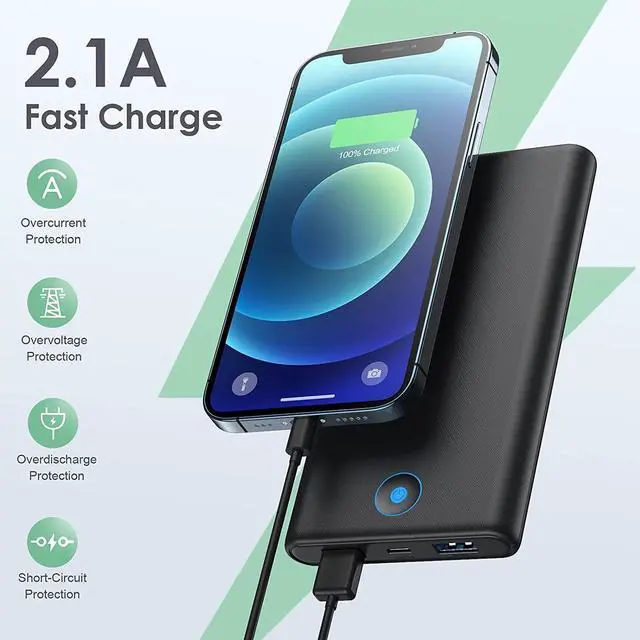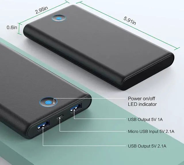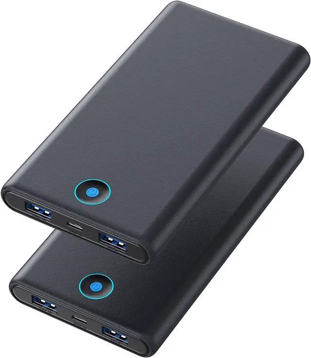 Ultra-rapid 2X2-Devices ChargingEach portable charger features dual 2.1A fast USB outputs, you can recharge your power bank more convenient using the included Micro USB cable. [ 2 pack ] dual outputs portable charger allow you to charge 4 devices simultaneously. Scroll, snap and stream more without worrying about low battery.