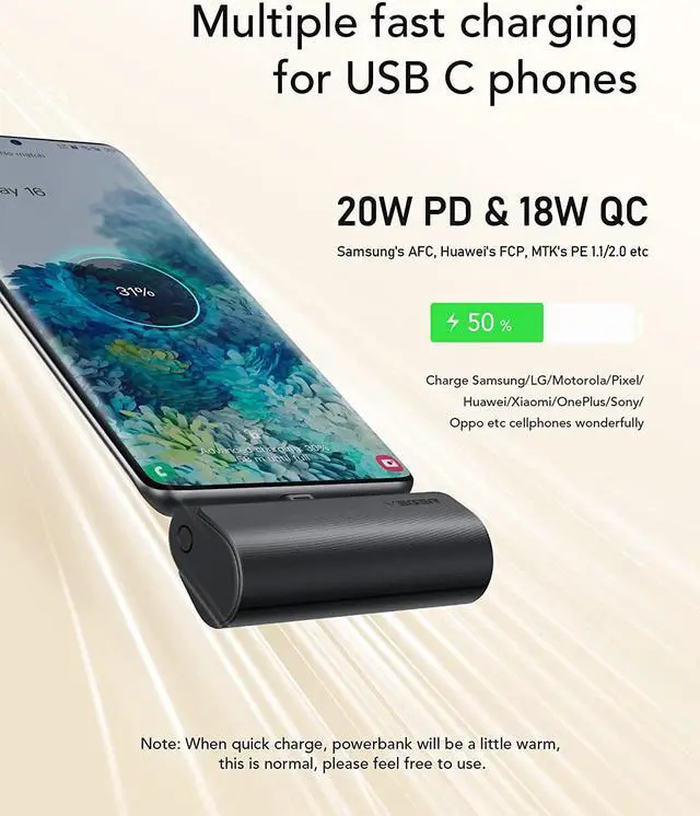 Portable Charger USB C Output: Widely compatible with Samsung S21, S20 FE, Galaxy A52, Note 20 Ultra, S10 Plus, S10, S10e, Note 9, S9 Plus, S9, Note 8, Galaxy Fold, Flip 3 and Fold 3 Series; compatible with LG G7 ThinQ, V40 ThinQ, V35 ThinQ, Stylo 4, G8, G6, Q6; compatible with Moto G7, G6, G7 Power, G7 Plus, G7 Play, Moto Z2 Play, E5, G6 Plus, Z3 Play etc; compatible with Google Pixel 5A, Pixel 6, Pixel 6 Pro etc; compatible with Pocophone, Oppo, TCL or other Android Type C Phones etc.