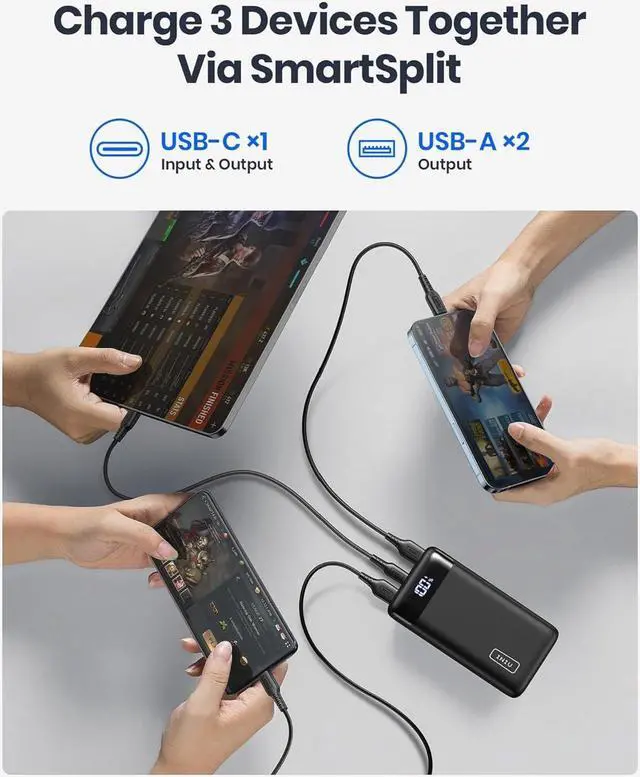 Even Wider CompatibilityUnlike the markets most power banks incapable of charging low-current accessories, INIU PD 3.0 Super portable charger can work with not only all the phones, tablets but your smaller devices like AirPods, Bluetooth headphones, fitness trackers, smart watches, etc.