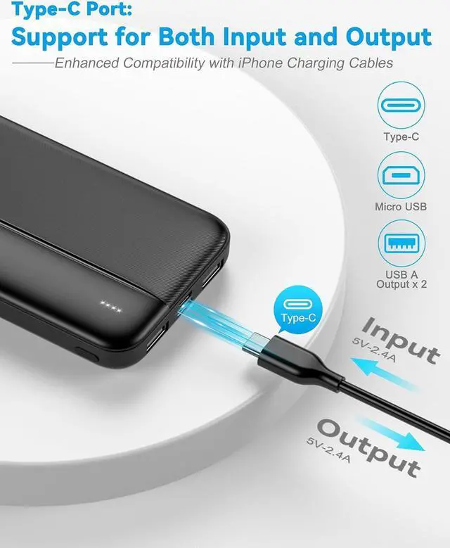 Efficient Charging - Our battery pack power banks come with two USB and one Type-C outputs, boasting 2.4A outputs that are faster than 2.0 outputs. Charge up to 6 devices at once and share the convenience of the 20000mAh portable charger with your family and friends.