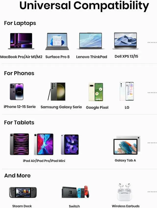 Power 1, 000+ Devices from Big to Small Whether you have an Android, Apple, or another brand of device, this charger's got you covered. A universal solution for all your charging needs.