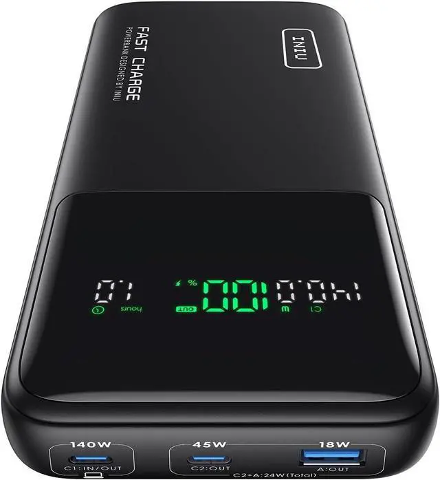 Charge 3 at Once With 3 charging ports, including a blazing-fast PD 3.1 140W USB-C in/out port, a PD 45W USB-C fast charging port, and a trusty USB-A port, this power bank is your all-in-one charging solution. It works seamlessly with various cable types, ensuring rapid charging for all your devices.