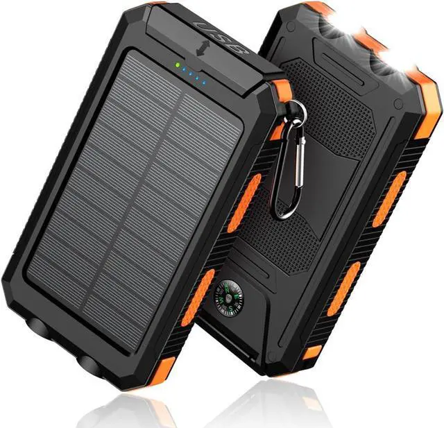 The Solar Charger Power Bank is made of environmentally friendly silicone, high-strength ABS and PC materials, with a protective cover attached to the outside of the charging/discharging port, which is waterproof, dust-proof, and drop-proof, very durable. It also comes with a carabiner that you can attach to your backpack while hiking and charge this power bank with solar energy.