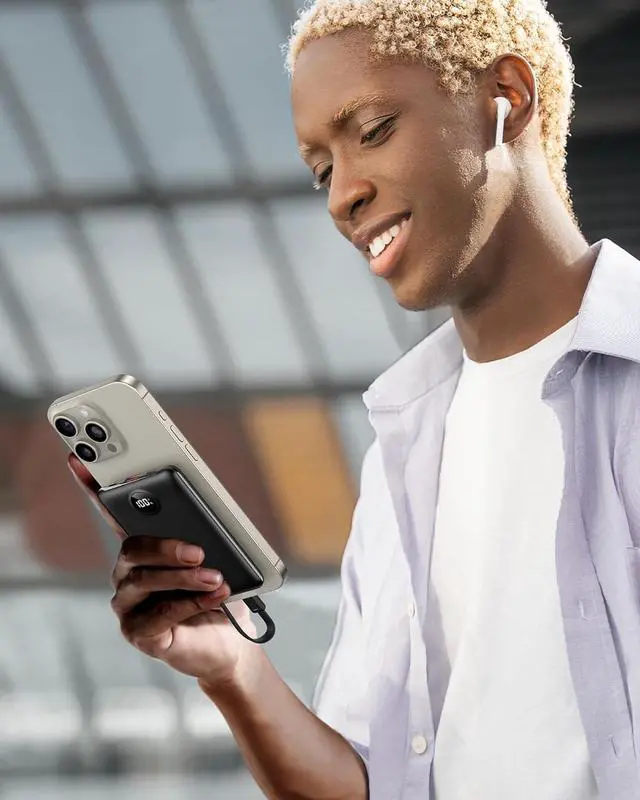 Ultra-Compact and LightweightExperience unparalleled portability with the slimmest and smallest portable charger featuring built-in cables. Weighing only 0.363 lb (165g), its credit card-like design makes it the ultimate mini charge card phone charger. Slip it into your pocket effortlessly for on-the-go convenience