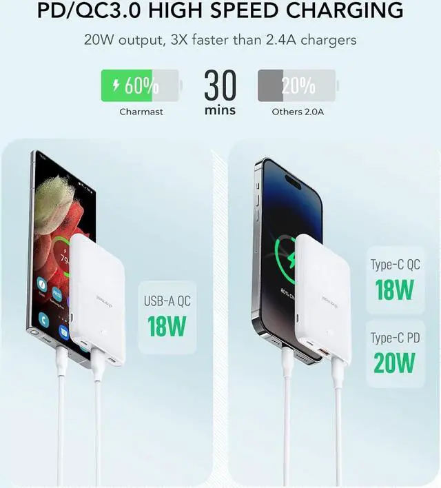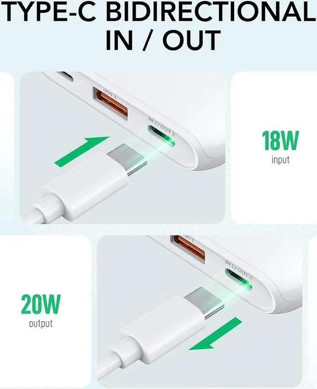 [Fast Charging Power Bank] USB A and C fast charging can charge your iPhone 12 or Samsung S21 up to 52% within just 30 minutes. It is especially suitable for daily work and travel, offering more convenience compared to the original charger.