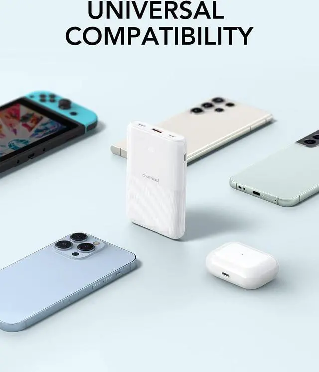 Charmast Small Powerful 10000mAh Portable Charger, PD QC Quick Charging Power Bank Mini 10000 USB C Battery Pack for iPhone, Samsung, Pixel, Other Smartphone, Tablets (White)