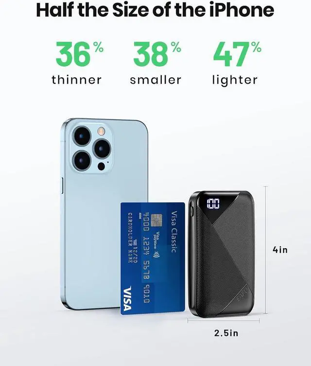 Half the Size of iPhoneEAFU 10000 is made up to 36% thinner, 38% smaller and 47% lighter than its kindslide effortlessly into your pocket or bag while taking up barely any space.