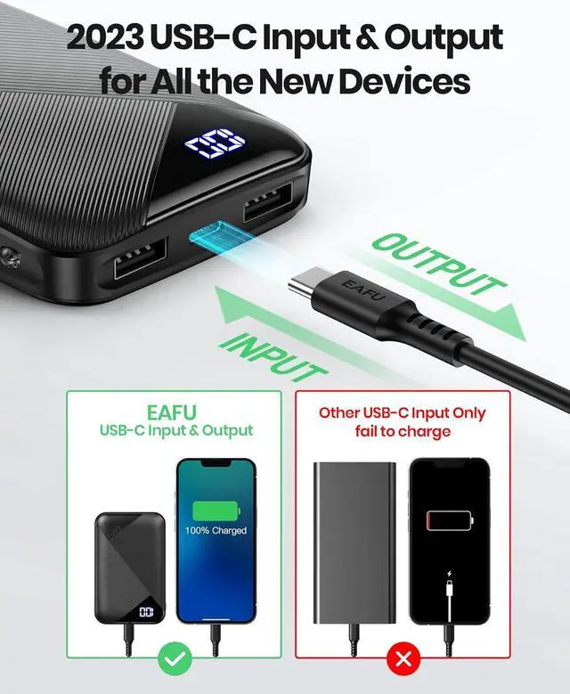 Latest USB-C Input & OutputFeatures the latest worldwide USB C charging standard, working as both input and output to not only let you fast refill itself, but perfectly fit the new iPhones, Androids and all upcoming USB C devices.