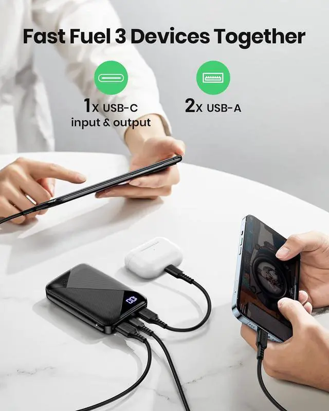 Fuel 3 Devices TogetherJuice up 3 devices together via the USB C port and USB outputs. No more queuing when charging. Triple-port design allows you to share portable power with families and friends.
