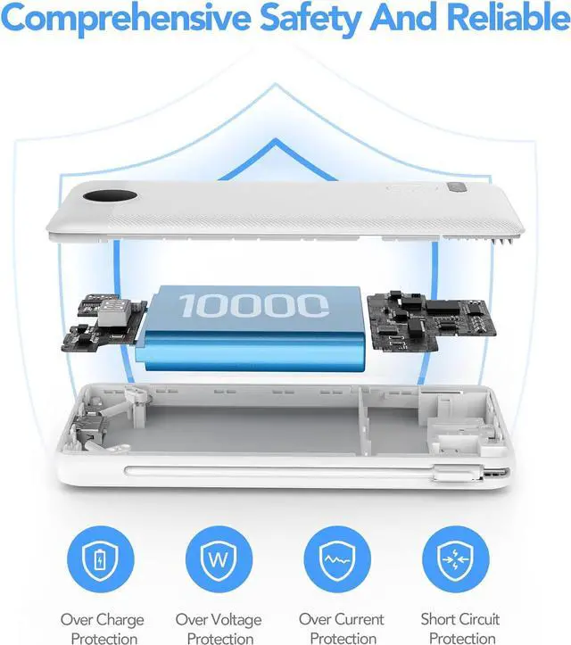 Safety ChargingThe 10000mah power bank built in wall plug uses high-quality smart chip, which will protect your device from overcharge, overcurrent, overvoltage, and short-circuit, creating a safe charging experience for you. *