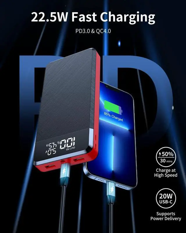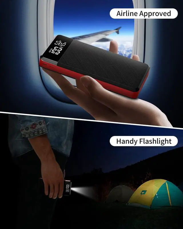 LED Digital DisplayThis unique portable charger features an excellent LED indicator, a percentage-based readout shows you the precise remaining power, Voltage, current, PD indication. No more guessing about the remaining power and when to recharge. Know before you go!