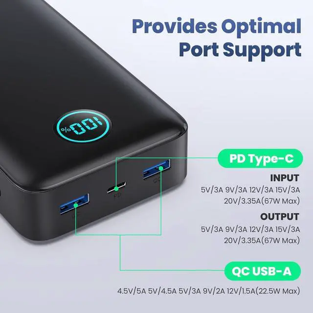[Accurate to 1% Digital Display] Percentage-based readout shows you the accurate battery level. No more guessing and worrying about the remaining power of the portable power bank. Take your time to recharge.