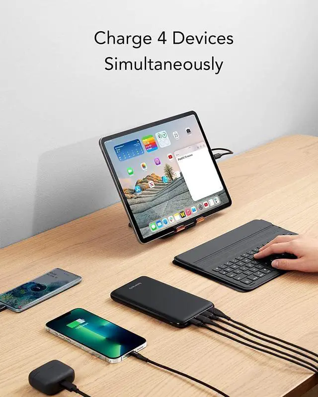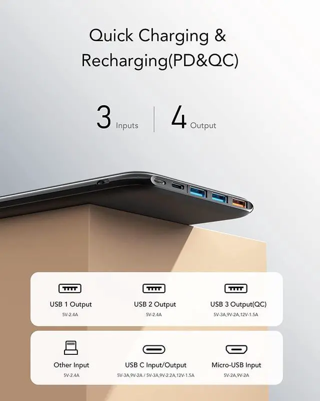 High-speed charging: Full recharging battery 7 hours by QC/PD 3.0 charger; It has two standard USB ports, a Quick Charge port and a USB-C port that allows you to charge multiple devices simultaneously, these iSmart ports will detect devices and set them for optimal charging settings. Quick Charge 3.0 port charges compatible devices up to 80% in 35 minutes, providing 5V 9V 12V voltage intelligently adjustable charging for different QC 3.0 devices, 4 times faster than conventional charging
