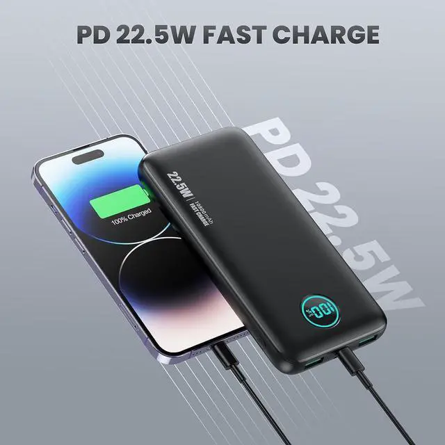 Fast Charging and Import Intelligent Controlling ICPower bank with the upgraded 22.5W output plus the latest PD& QC+ fast-charge technologies, your phone can be charged at 60%-80% in just 30 minutes, The portable charger adopt Import Intelligent Controlling IC to prevent power bank overcharge, overvoltage, overcurrent and short circuit. [CE certified] make sure product quality is safer.