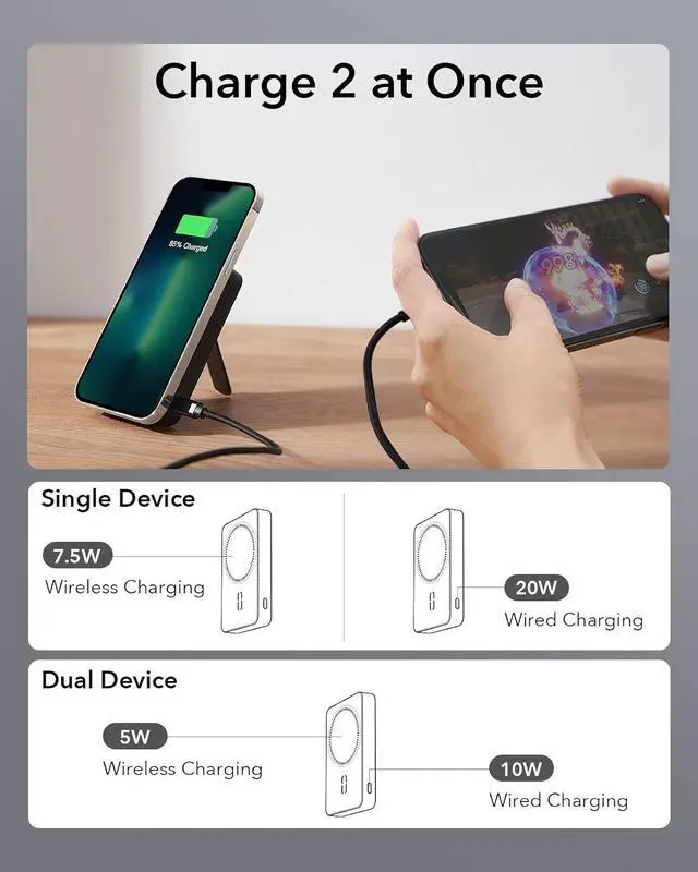 Power Your Whole Day: large 10, 000mAh battery capacity lets you charge your iPhone 13 1.6 times; choose from 7.5W wireless charging or 20W wired charging, for fast charging that won't slow you down