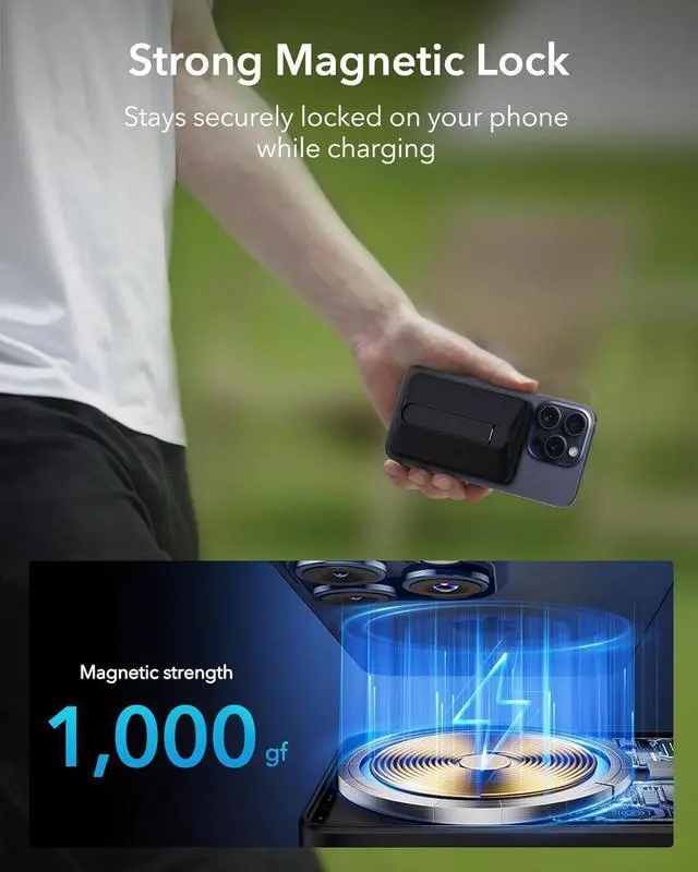 Strong Magnetic Lock: powerful magnets with 1, 000 g of holding force ensure the power bank stays securely locked on your phone