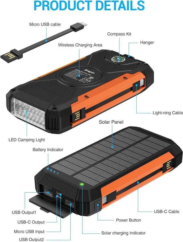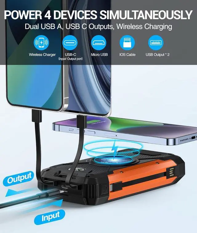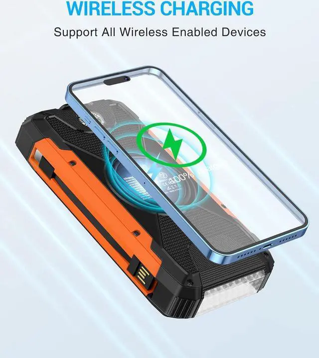 Advanced Wireless Portable Charger: Truly cable-free solar battery charger, the wireless output supports all Qi-enabled phones for inductive charging. Such as iPhone13/13 mini/13 Pro/13 Pro Max/iPhone12/12 mini/12 Pro/12 Pro Max/iPhone11/11 Pro/11 Pro Max, Samsung Galaxy S9/S9plus S8/S8plus etc.