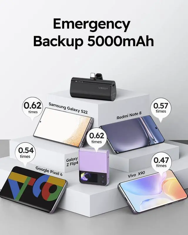5000mAh Emergecy Battery Backup Charger: Power bank is true 5000mAh ( 3.7V Battery), best portable charging source for usbc phone or other USB C gadgets (18W below) battery backup, normally support around 0.8 ~ 1.2 charges for your android phone.