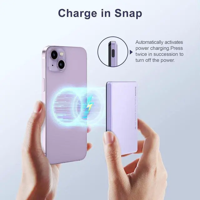 Innovate Technology Batteries: NOHON rechargeable power pack adopts ultra-thin blade batteries design. Its ultra-thin battery shape can realize the power supply like ordinary heavy power bank treasure in a thinner volume. With its slim size, wireless and magnetic design, the portable charger provides barrier-free portability, giving you a easily travel.