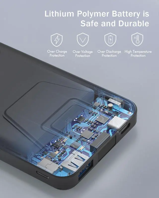 10000mAh Large Capacity & Smart LED Display10000mAh large capacity and high density battery design can provide all-day power; The magnetic power bank can charge 2 times for iPhone 15/14/13/12 Pro, about 1.5 times for iPhone 15/14/13/12 Pro Max & iPhone 15/14 Plus; You can know how much the mag-safe power bank is left with the clear digital on smart led display.