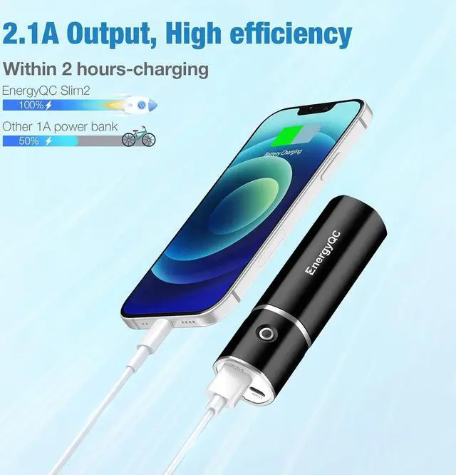Fast Charging The 5000mAh portable charger 2.1A fast output automatically detects your device and provides the fastest charging speed for your phone.