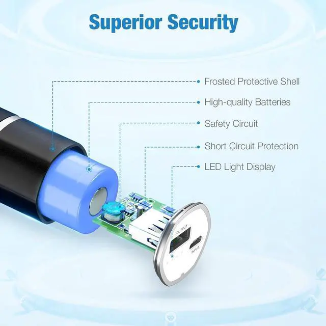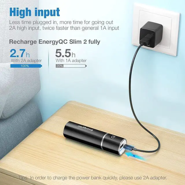 Fast self-charging2A fast input, effectively saving charging waiting time, 4 LED indicators design, clearly know the power remaining.