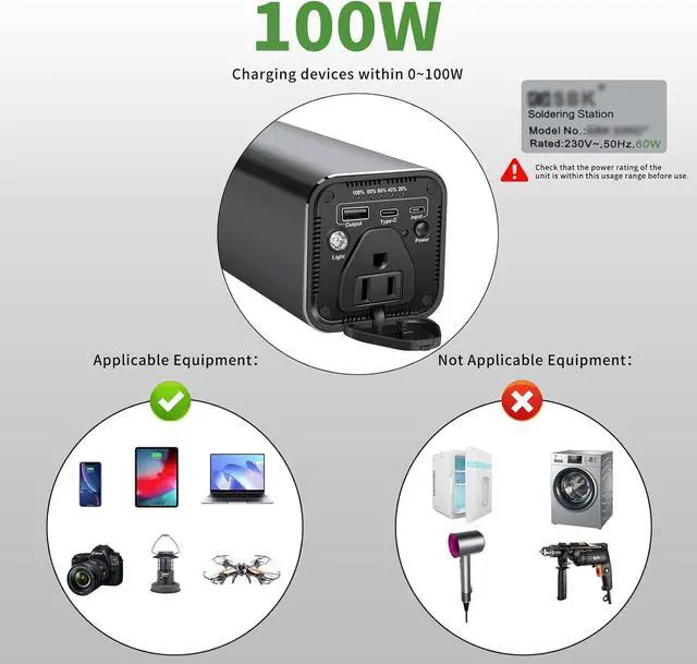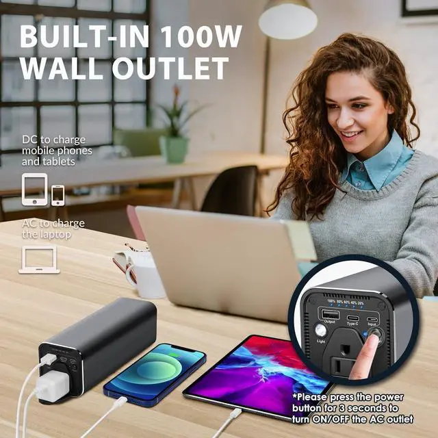 AC Output Function: This Portable Power bank Built-in 110V/100W AC Outlet, with 31200mAh Lithium-ion Battery Pack, Have Enough Power to Charge Most of Your Devices. It Will Keep Your Laptop on the go.