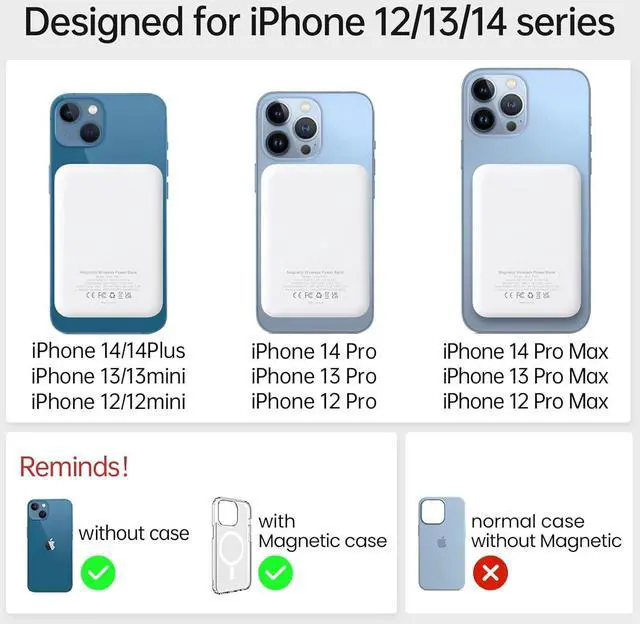 [Battery Pack Compatible with Magnetic ] Compatible for iPhone 14/13/12, 14 Plus, iPhone 12/13 mini, iPhone 12/13/14 Pro, iPhone 12/13 Pro Max.