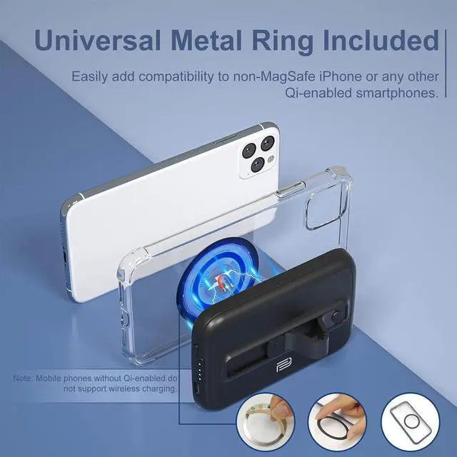Better Silicone Phone GripThis wireless power bank power bank built in a soft finger ring holder designed to hold your iPhone 13/iPhone 12 in place. Also, it can free your hands and fit your finger better while selfile, calling, watching movies.
